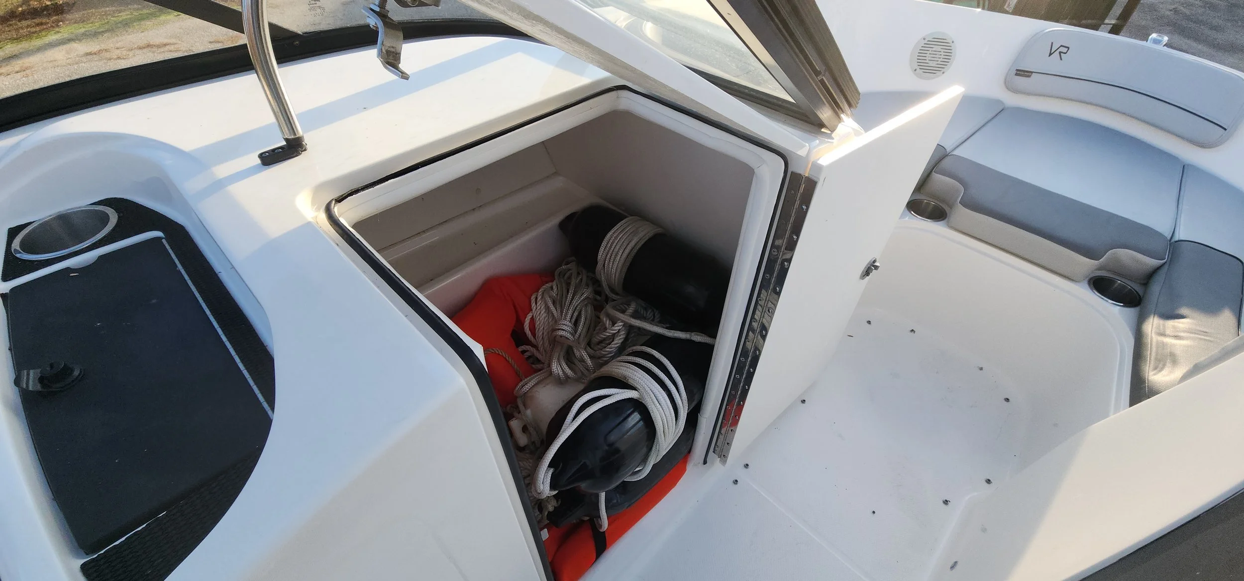 The VR6 builds on Bayliner’s proven V-bottom bowrider heritage, combining modern form and thoughtful function for an unbeatable on-water experience. As the captain, enjoy a well-equipped helm station with multi-function gauges (fuel, speedometer, tachometer, and voltmeter) under fog-resistant glass lenses, plus a 180° swivel seat and a sport windshield with opening center panel for airflow and easy access. The Bayliner VR6 is all about space and unparalleled roominess, combining category-leading BeamForward design with high gunnels creates more passenger space and under-seat storage while prioritizing safety. With an exceptionally roomy cockpit thanks to our exclusive AftAdvantage design, our spacious cockpit seating converts to inviting U-lounge with a 3-position portside companion seat and integrated cooler. Maximizing space and value, the VR6 also includes in-floor ski/wakeboard storage, a large aft compartment, and a lockable port-side changing room with additional storage, features rarely found in this class of boat. With its clever layout and family-friendly versatility, the Bayliner VR6 redefines what a bowrider can offer.