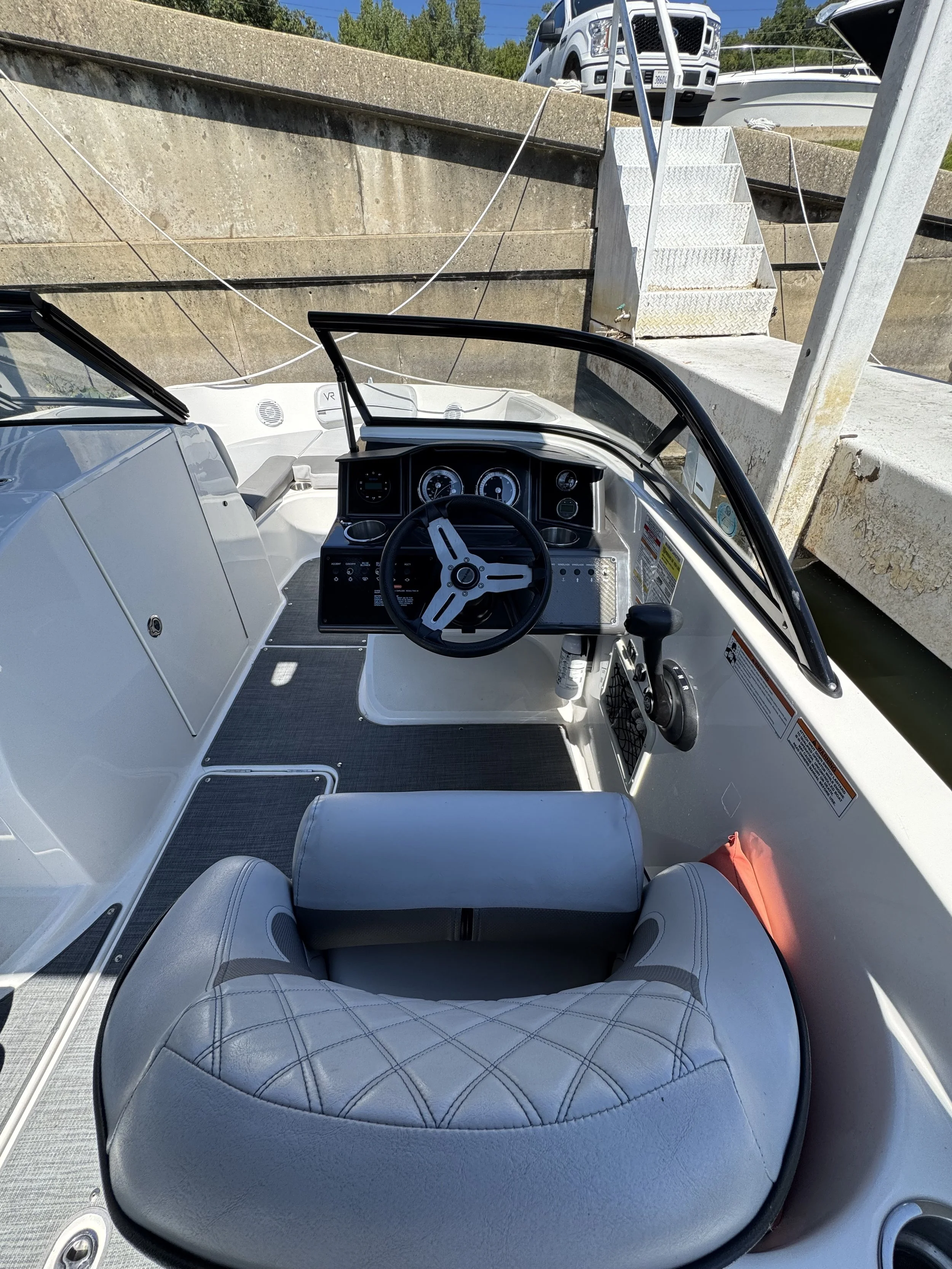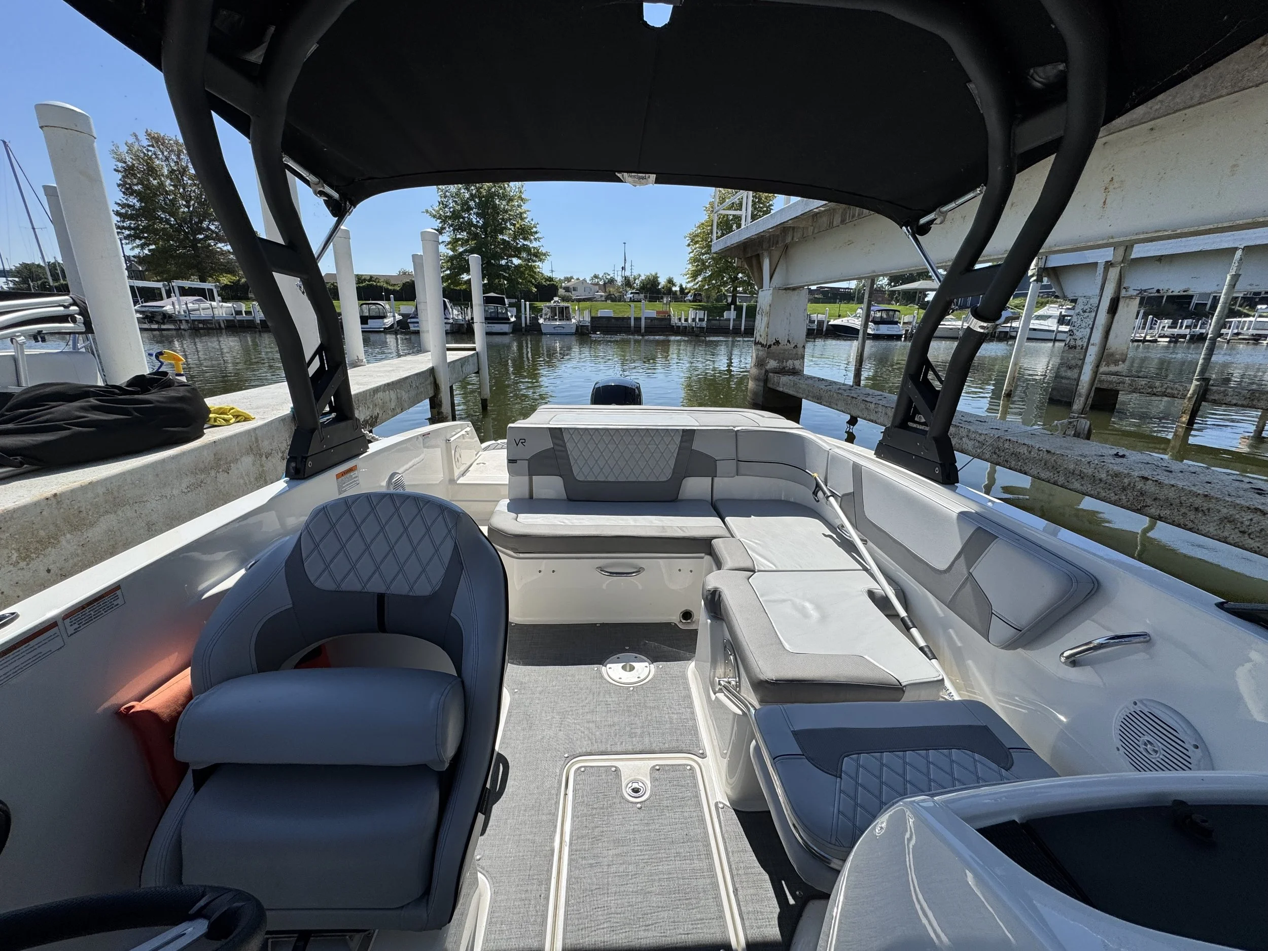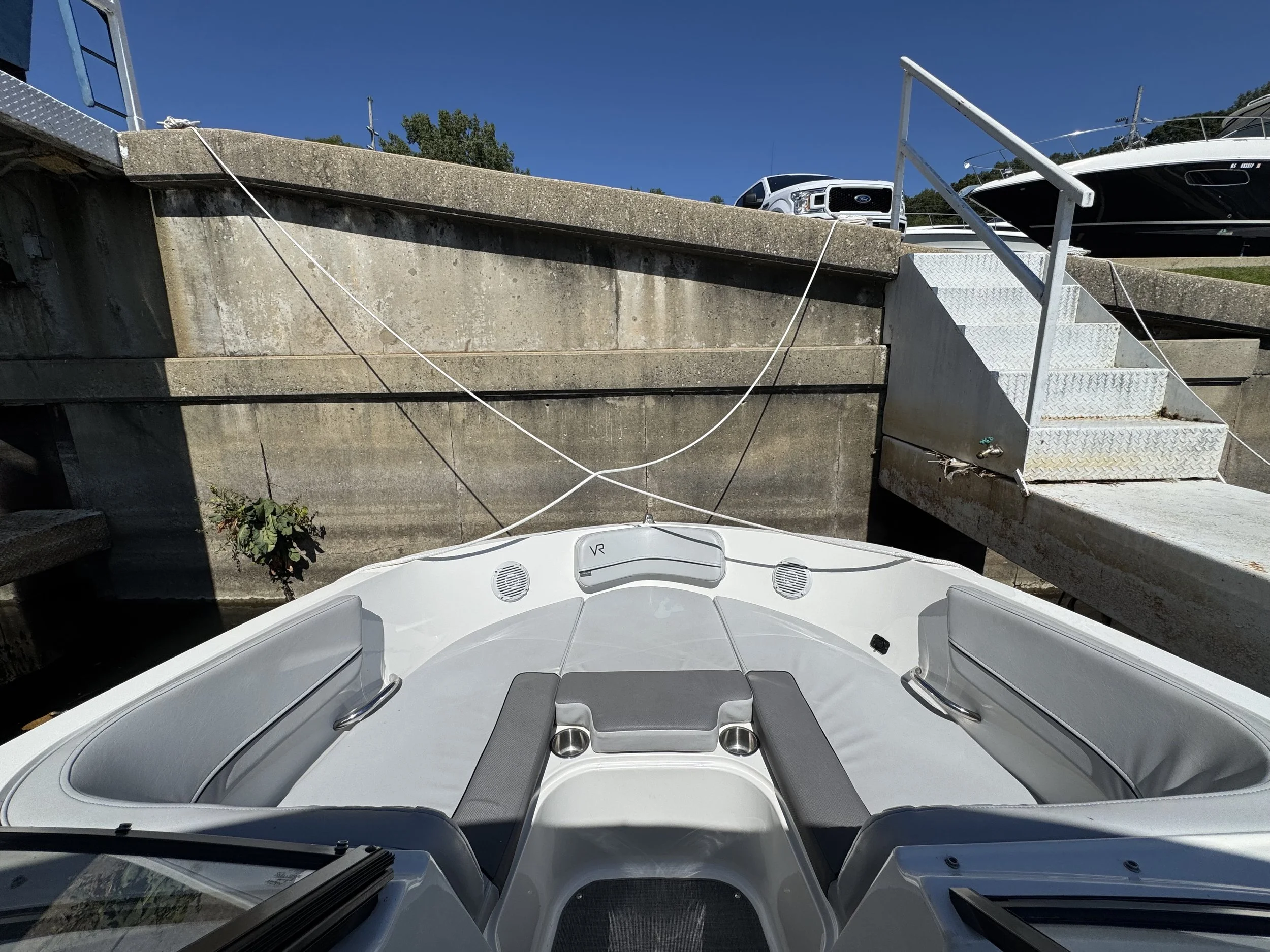 The VR6 builds on Bayliner’s proven V-bottom bowrider heritage, combining modern form and thoughtful function for an unbeatable on-water experience. As the captain, enjoy a well-equipped helm station with multi-function gauges (fuel, speedometer, tachometer, and voltmeter) under fog-resistant glass lenses, plus a 180° swivel seat and a sport windshield with opening center panel for airflow and easy access. The Bayliner VR6 is all about space and unparalleled roominess, combining category-leading BeamForward design with high gunnels creates more passenger space and under-seat storage while prioritizing safety. With an exceptionally roomy cockpit thanks to our exclusive AftAdvantage design, our spacious cockpit seating converts to inviting U-lounge with a 3-position portside companion seat and integrated cooler. Maximizing space and value, the VR6 also includes in-floor ski/wakeboard storage, a large aft compartment, and a lockable port-side changing room with additional storage, features rarely found in this class of boat. With its clever layout and family-friendly versatility, the Bayliner VR6 redefines what a bowrider can offer.