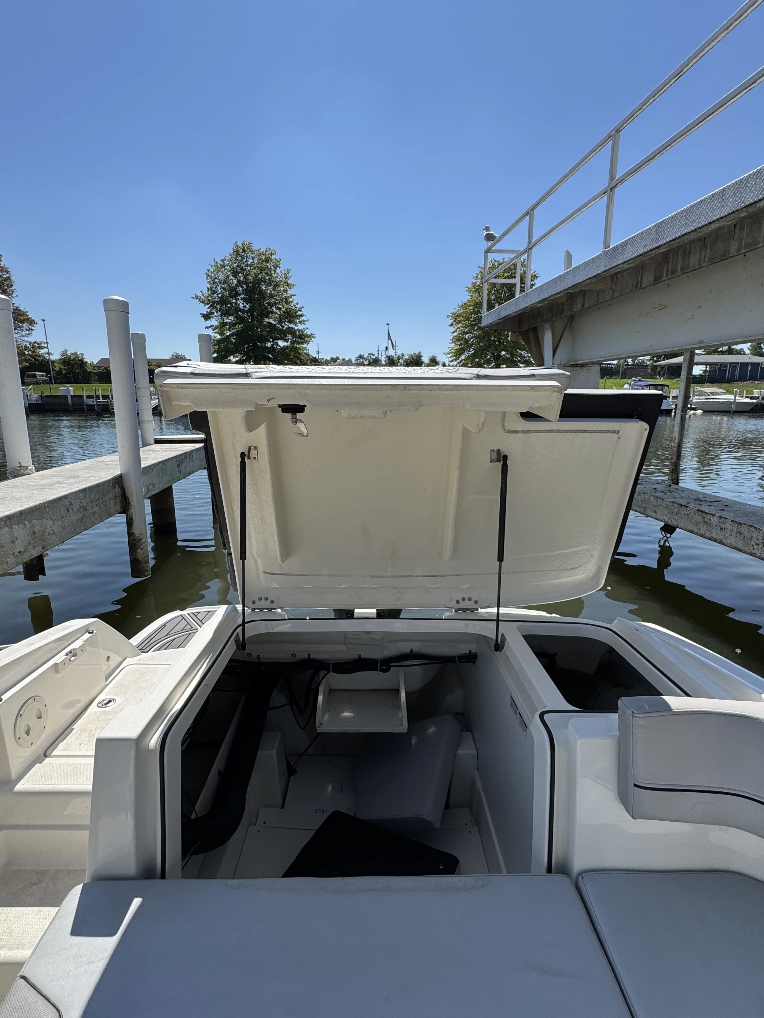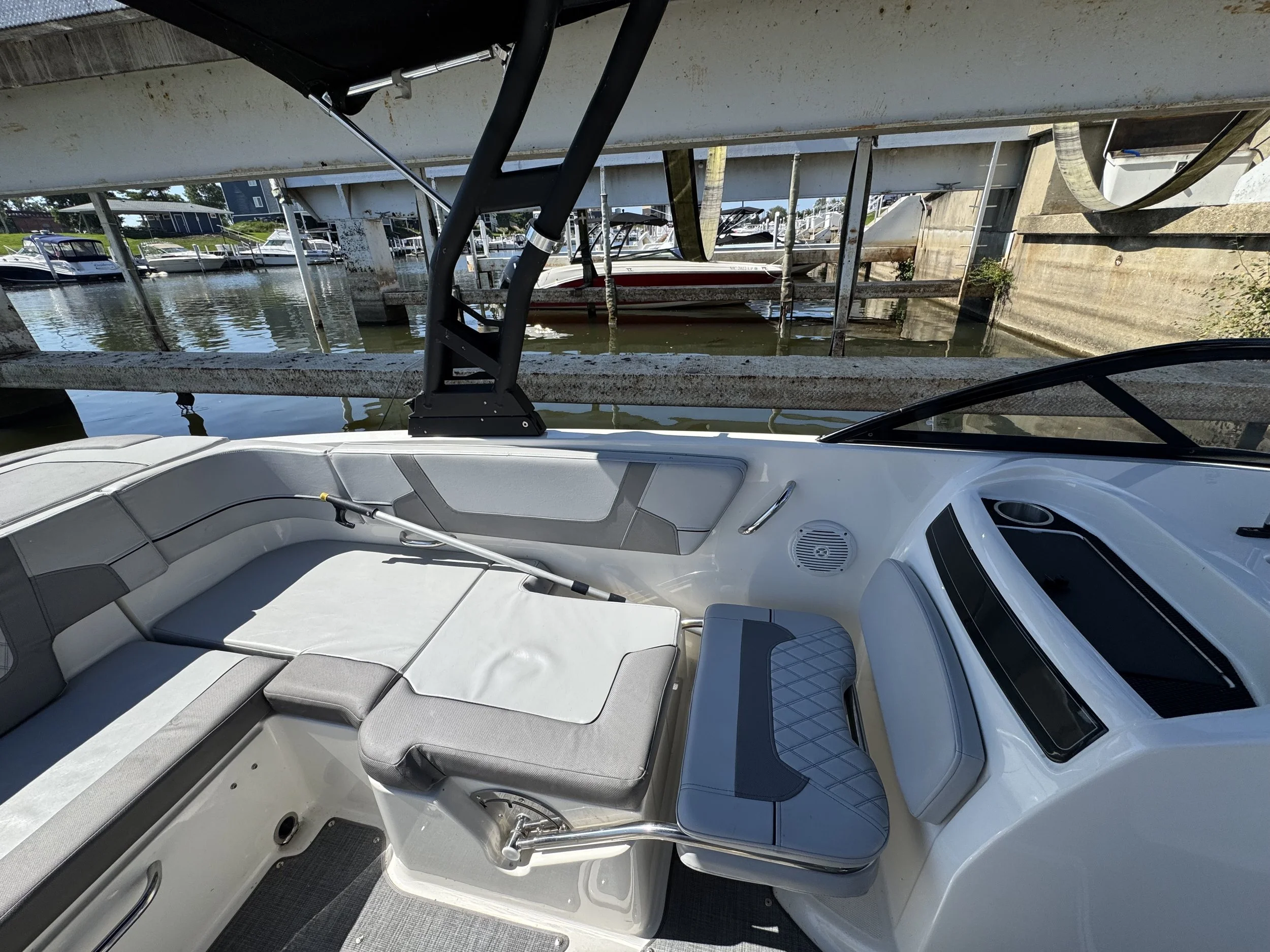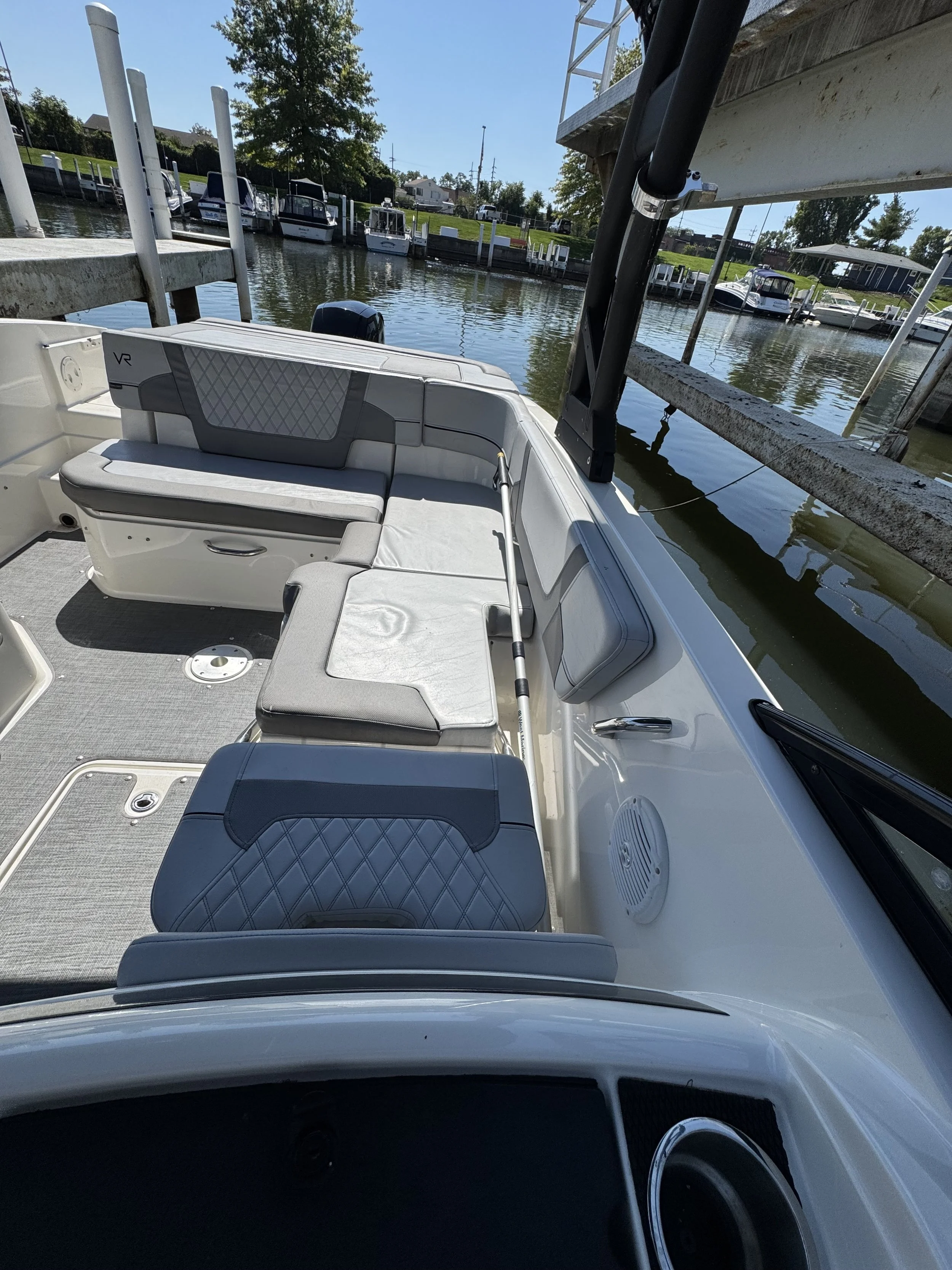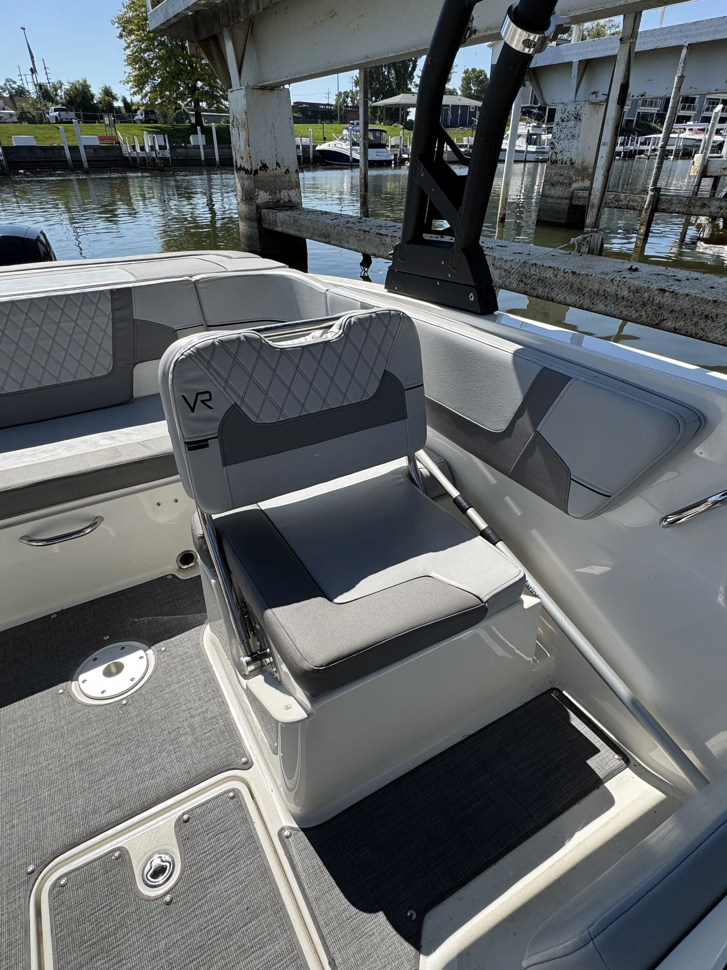 The VR6 builds on Bayliner’s proven V-bottom bowrider heritage, combining modern form and thoughtful function for an unbeatable on-water experience. As the captain, enjoy a well-equipped helm station with multi-function gauges (fuel, speedometer, tachometer, and voltmeter) under fog-resistant glass lenses, plus a 180° swivel seat and a sport windshield with opening center panel for airflow and easy access. The Bayliner VR6 is all about space and unparalleled roominess, combining category-leading BeamForward design with high gunnels creates more passenger space and under-seat storage while prioritizing safety. With an exceptionally roomy cockpit thanks to our exclusive AftAdvantage design, our spacious cockpit seating converts to inviting U-lounge with a 3-position portside companion seat and integrated cooler. Maximizing space and value, the VR6 also includes in-floor ski/wakeboard storage, a large aft compartment, and a lockable port-side changing room with additional storage, features rarely found in this class of boat. With its clever layout and family-friendly versatility, the Bayliner VR6 redefines what a bowrider can offer.
