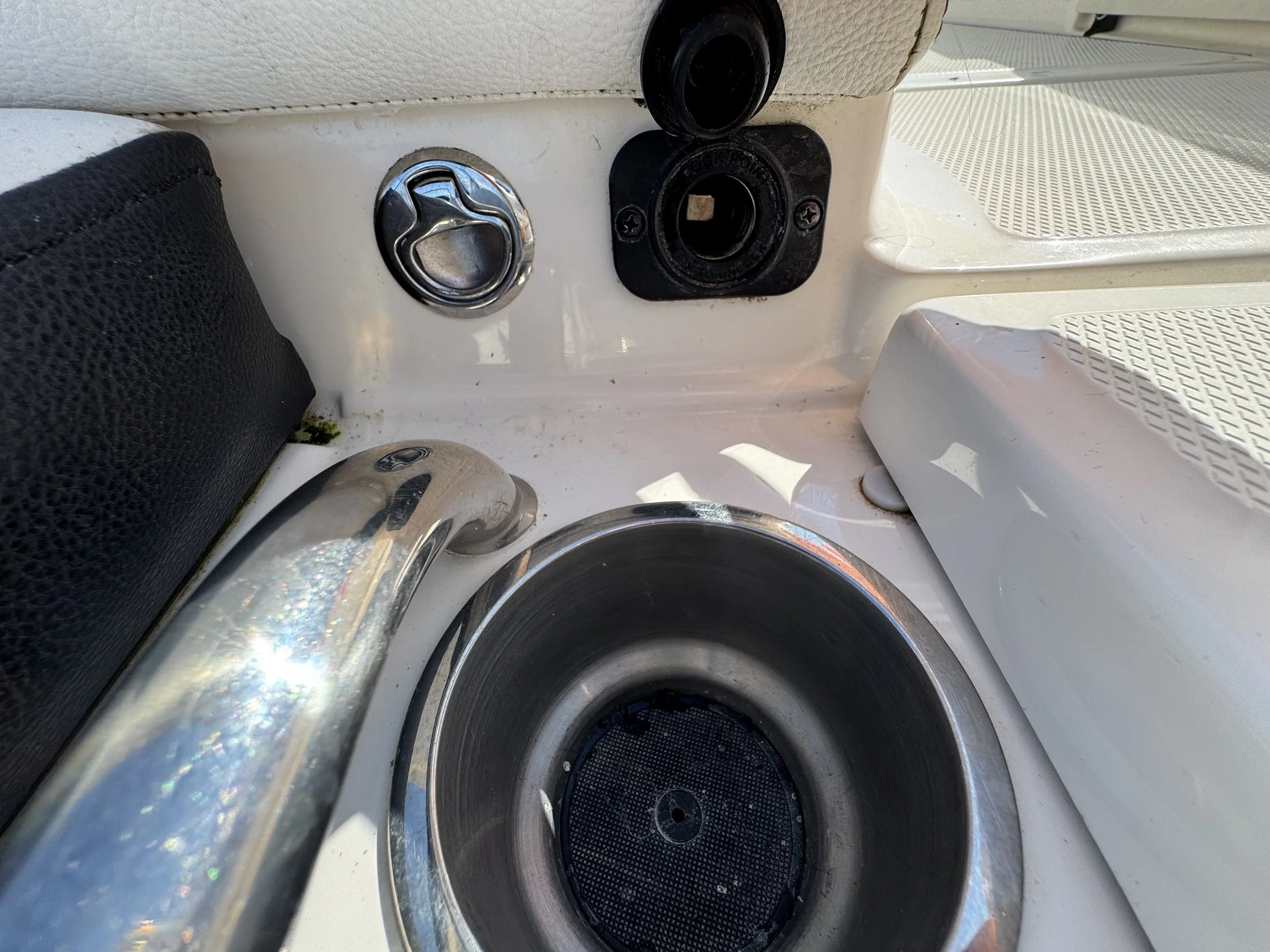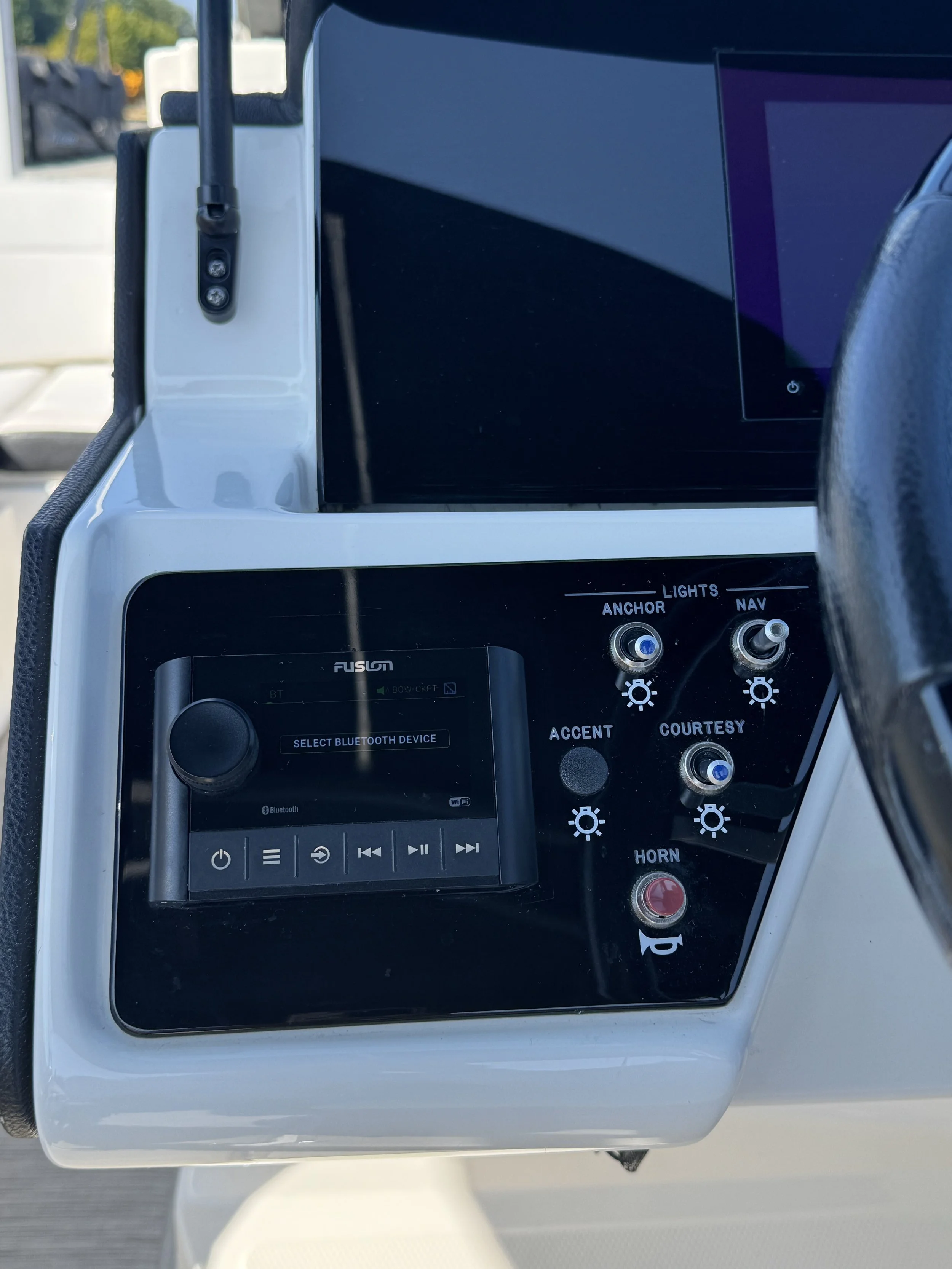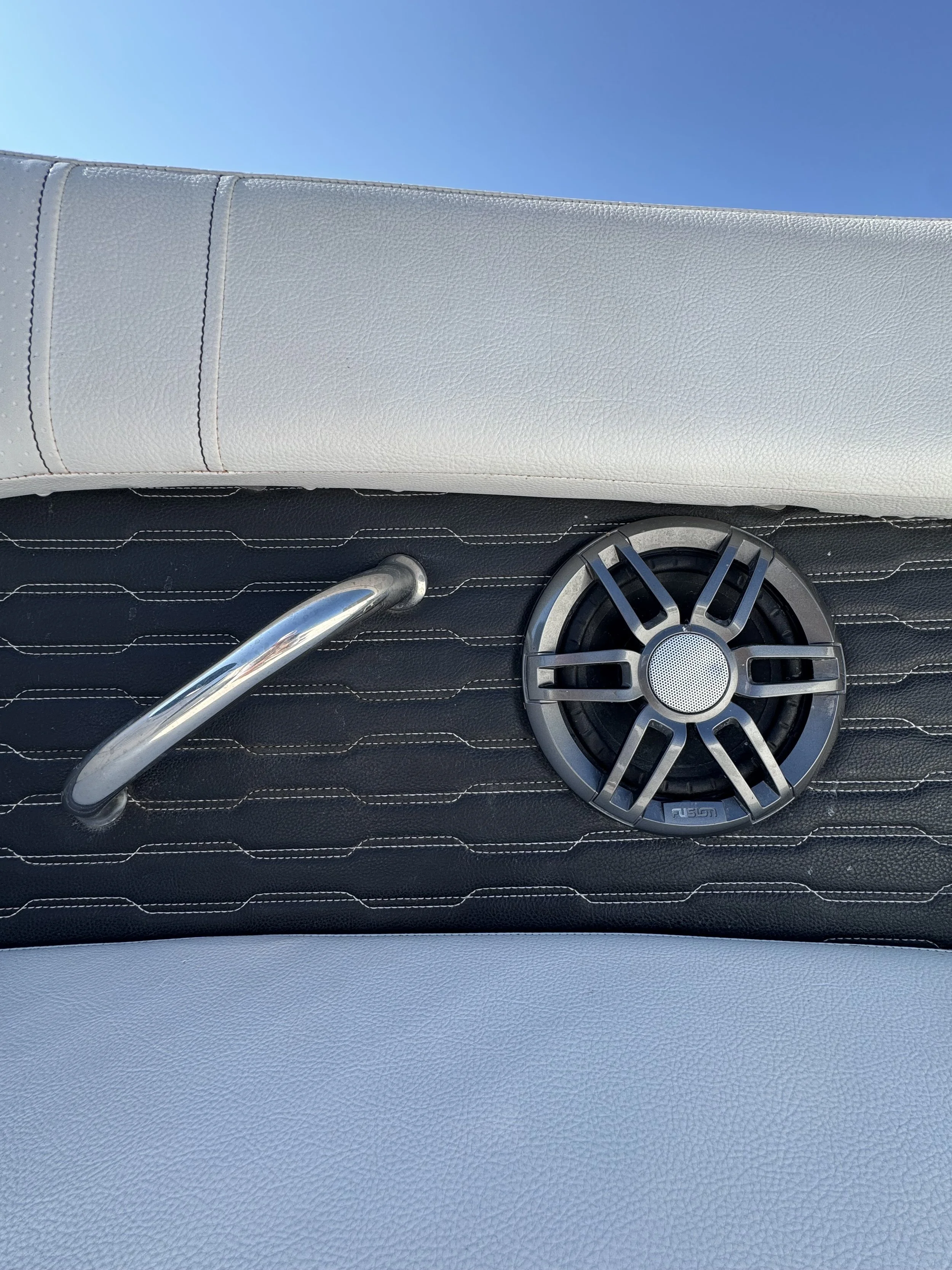 Up front, forward seating with integrated bow speakers provides a great spot to stretch out and relax. The spacious cockpit includes a smart bench seat with dedicated cooler storage and a 12V charging port. For added flexibility, the portside features an optional three-position lounger, while the convertible transom sunpad creates the perfect place to take in the view. Convenient hidden storage is thoughtfully placed throughout, including a large aft compartment for extended days on the water. At the helm, the dashboard comes equipped with Simrad navigation and a Bluetooth audio system for full control and entertainment. Premium touches like Infinity luxury vinyl flooring add durability and style. Powered by Mercury MerCruiser propulsion, the SPX 230 is equally at home pulling watersports or cruising efficiently. Its innovative hull design delivers a smooth, quiet ride, making this one of the most versatile and stylish boats in its class.
