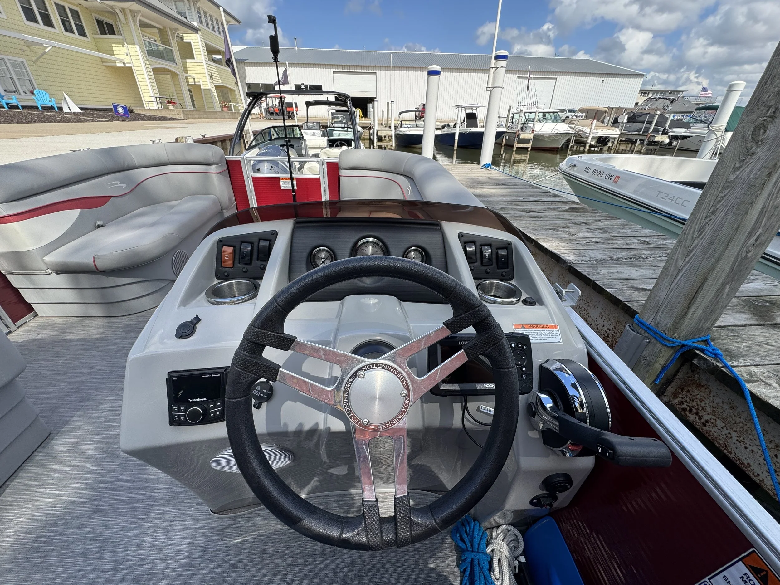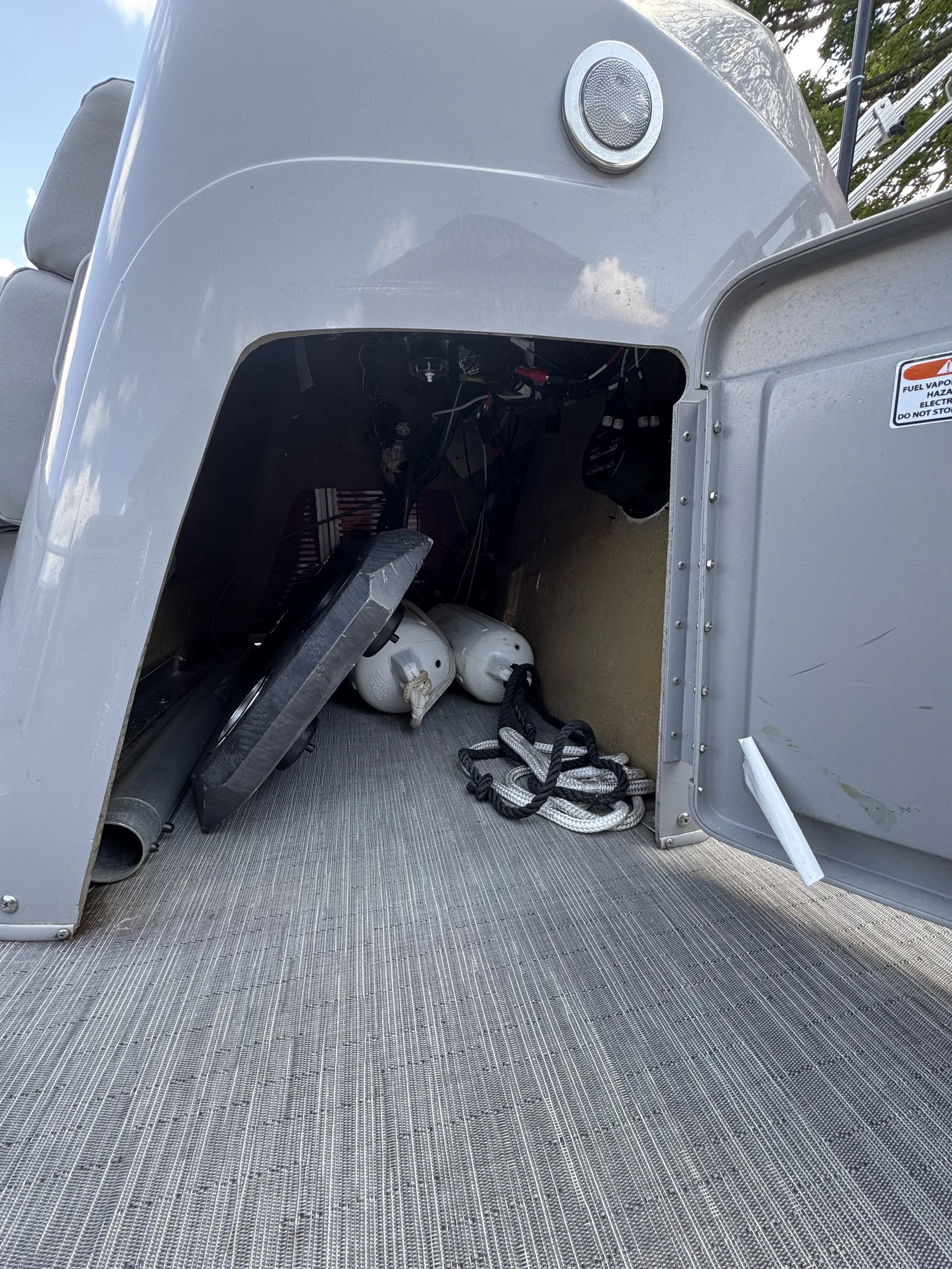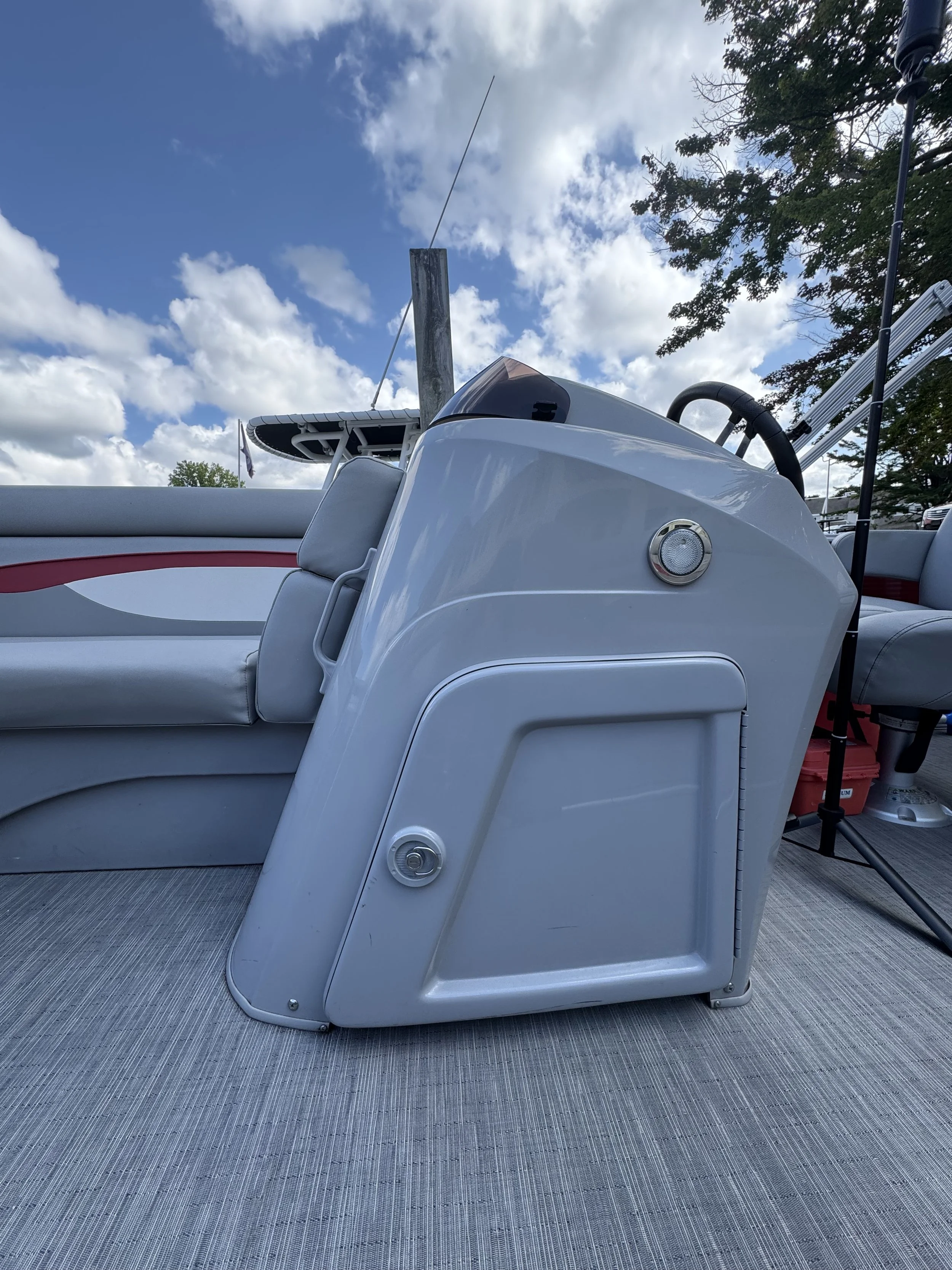 Designed for socializing, the spacious layout includes an inviting L-shaped lounge to port and forward benches with a stowable table— perfect for gathering family and friends. The redesigned helm makes entertaining effortless, featuring a GPS Fishfinder and a Bluetooth® audio system. Powered by a dependable Mercury 115HP engine, this pontoon offers reliable performance whether you’re enjoying a relaxed cruise or picking up speed across the lake. With comfort, technology, and capability built in, this model is ready to elevate every day on the water.